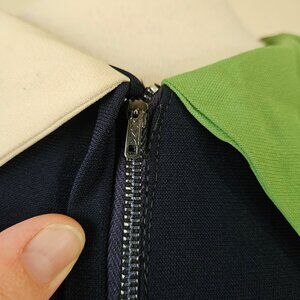 Vintage 60's Mod Navy Blue Green White Scarf Color Block Sheath Dress Size M/L