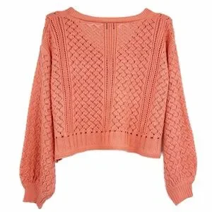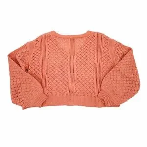 Add texture to your wardrobe with this Molly Bracken coral knit cardigan. This piece features an open knit design, button-front closure, a flattering cropped length, and balloon sleeves.