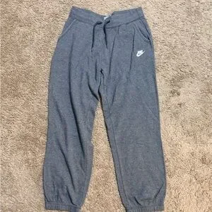 Soft charcoal joggers with elastic waistband. Features Nike logo. Ideal for active play.