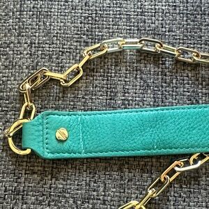 TORY BURCH Teal and Gold Leather Chain Shoulder Bag/Clutch