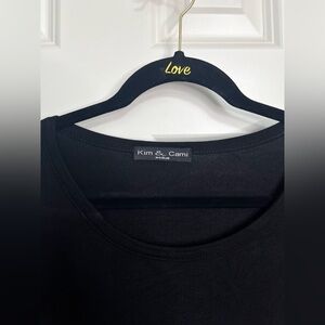 Stylish black blouse with vibrant red floral sleeves. Perfect for casual outings. This item was worn once.