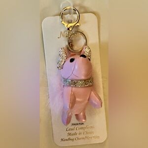 BRAND NEW!!! Adorable pink dog keychain or Bag Charm adorned with sparkling rhinestones. Perfect accessory for bags or keys.
