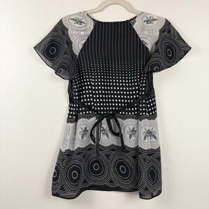 Bay Studio Black & White Geometric Career Blouse Empire Waist Tie Flutter Size M