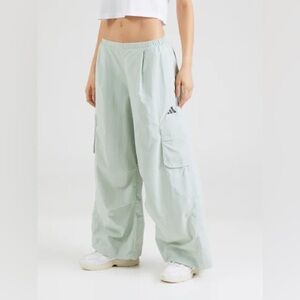 Adidas Light Gray Wide-Leg Cargo Pants Sage Parachute XS