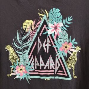 Def Leppard Multicolor Tropical Floral Logo Black Graphic Tshirt Size XL