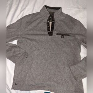Untuckit Men's Medium Gray And Olive Sweatshirt With Bitton Neck And Pocket