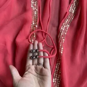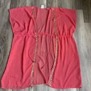 2000's Y2K Coral Pink Sequined Cover Up Shrug Kimono Sheer One Size Adjustable