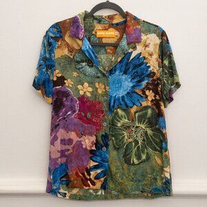 Jams World Honolulu Floral Button Shirt Small Rayon Aloha Resort Travel Top