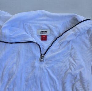 This is NWOT Tommy Jeans ribbed quarter-zip top with a:
