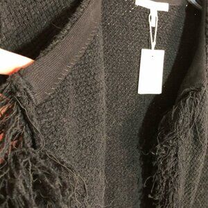 Maje Fringe Cardigan Sweater Black Medium