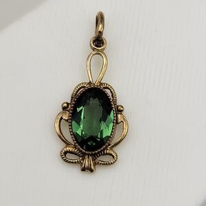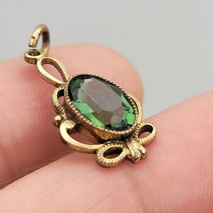 Vintage "Likely" Antique Faceted Green Gemstone Gold Filled Unsigned Pendant