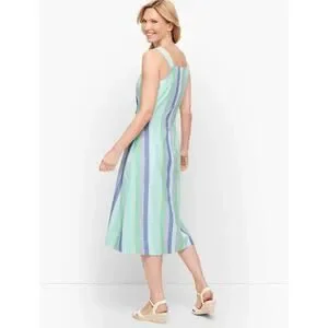 Channel effortless seaside elegance with this Talbots midi dress. Rendered in the refreshing Beachcomber Stripe—a vibrant mix of Blue and Green—this dress is a masterclass in nautical-inspired style.