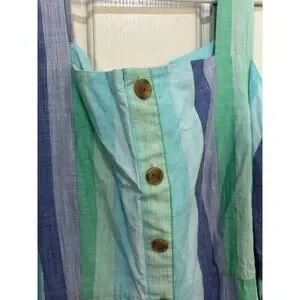 Talbots Midi Dress Beachcomber Stripe Cotton Blend Blue Green Size 12