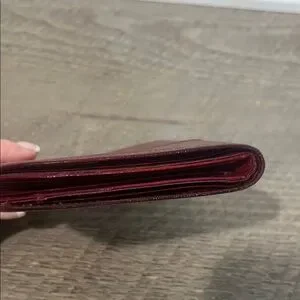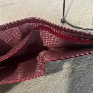 Chic vintage red eel leather wallet with multiple card slots. Ideal for stylish organization.