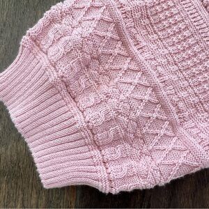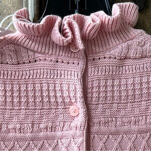 Brand new with tags! Girls Janie and Jack charmingly dusty pink short sleeve sweater with ruffle details and button closure on the back. Intricate knit pattern. Perfect for stylish outings.
