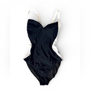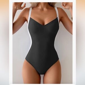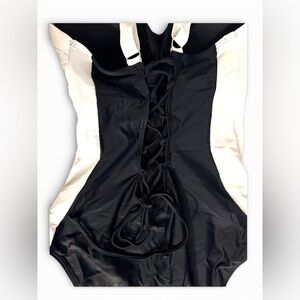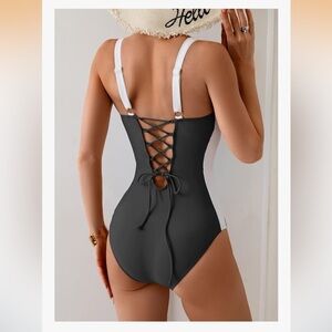 Eomenie One Piece Lace-Up Back, Colorblock Swimsuit. Size M