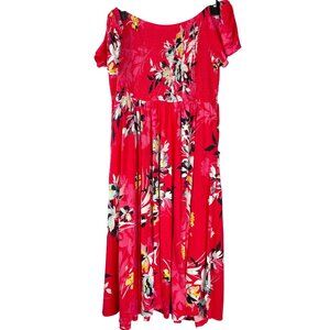 Torrid Super Soft Floral Smocked Midi Dress Pockets Rayon Spandex Size 1