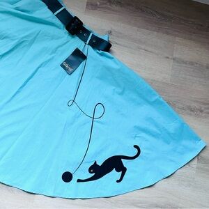 Collectif Kitty Cat 50s Swing Skirt w/ Pockets & Belt Medium 8 Retro