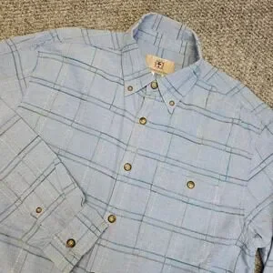 The Territory Ahead Mens Light Blue Plaid Long Sleeve Button Down Shirt Size L