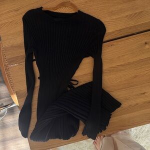Quince Cotton Cashmere Ribbed Long Sleeve Crew Midi Dress