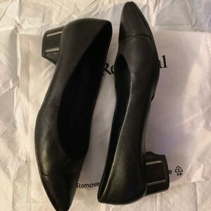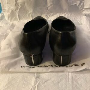 CHANEL Black Leather CC Logo Cap Toe Pumps Pointed Toe Low Heel Women’s 39.5