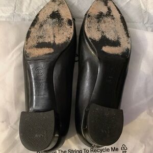 This Chanel is 100% authentic, preowned with still a lot of life left, it is missing the CC logo in the right foot’s shoe and that’s reflected on the price.