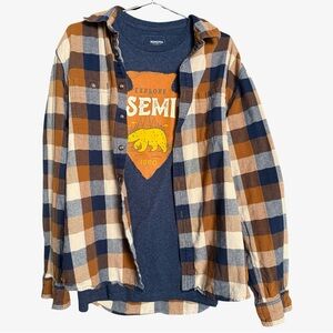 Casual plaid shirt by Sonoma. Features blue and brown checkered pattern. Perfect for everyday wear.
