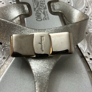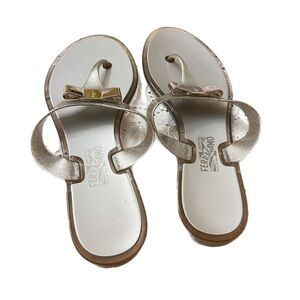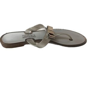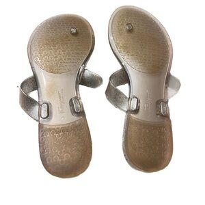 Salvatore Ferragamo Farella Silver Glitter Flip Flop Sandals 7