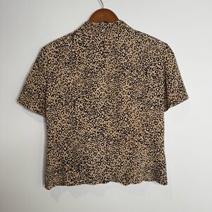 Vintage 90s 100% Silk Animal Leopard Print Structured Short Sleeve Blazer Top