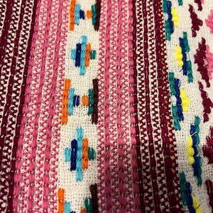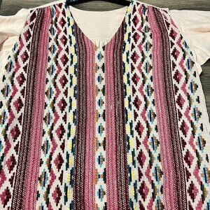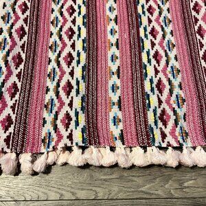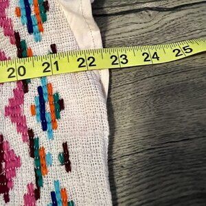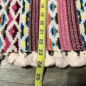 NWT Tru Luxe Jeans Top with Mixed Material. Size med. Tassels fringe on the hem. Measurements taken with the garment laying flat. 22" across the chest and 24" in length.