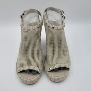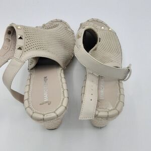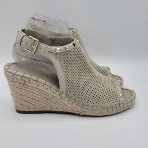 Marc Fisher Senton Leather Espadrille Wedge Sandal. Size 8.5. Very good preloved condition. Normal wear associated with use-scratches and scuffing. Please review all photos for visual description of condition and wear. approximate heel height 3.5", platform 1".