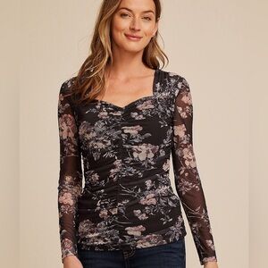 Discover timeless elegance with this floral long sleeve blouse. The black base is beautifully complemented by a delicate floral design, perfect for any occasion. large/size 10