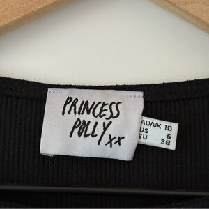 Princess Polly Black Ying Yang Long Sleeve Crop Top Size 6 Ribbed Exposed Seam