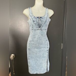 Acid Washed Denim Sleeveless bodycon Dress unbranded overall straps