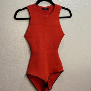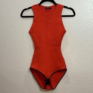 LE LIS BLANC Ribbed Knit Orange Bodysuit Racerback Snap Closure Women Size PP