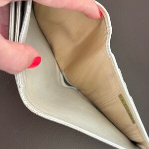 Elegant Chanel wallet in a sophisticated light pearl color.