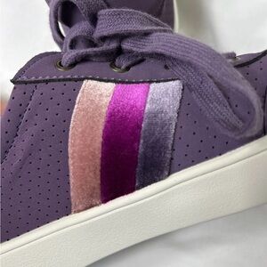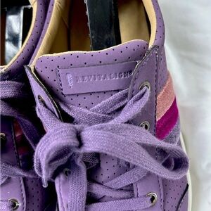 Stylish purple athletic shoes by REVITALIGN. Features perforated design and lace-up closure. Comfortable and trendy.