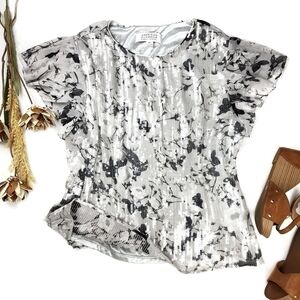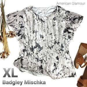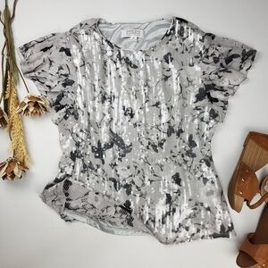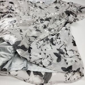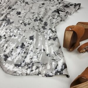 🔴 Badgley Mischka Sequined Grey Silver Floral Top XL