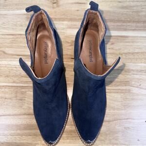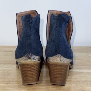 Jeffrey Campbell Cromwell Booties Blue Suede Metal Toe Heel Style Western Sz 8