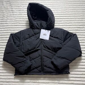 ALO Women's Black Hooded Quilted Zip Short Puffer Jacket Polyester Regular Fit M