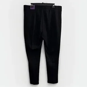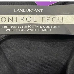 These are authentic Lane Bryant Livi black leggings designed for comfort and style. They are a high-rise, pull-on style with a wide, smoothing waistband for a flattering fit. The leggings are from Lane Bryant's LIVI Active line and feature their Control Tech technology. This technology includes "revolutionary slimming mesh panels" designed to smooth and contour the body for a "super-sleek silhouette". The pants also have a wider elastic waistband for support and comfort. This technology is available in various styles of their activewear, including high-rise leggings and capri leggings. This pair has a 26-inch inseam, making them an ankle-length or 7/8 crop fit. The color is a classic black, a versatile staple for any wardrobe.