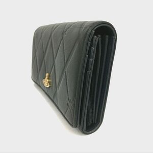 Authentic Vivienne Westwood quilted wallet in sleek black leather, featuring the signature gold-tone orb logo on the front for that punk-rock luxury vibe.