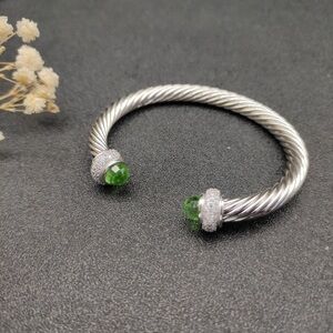 David Yurman Silver Bracelet with Green Gemstones