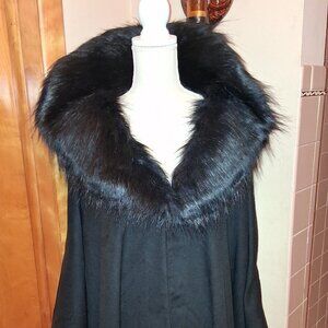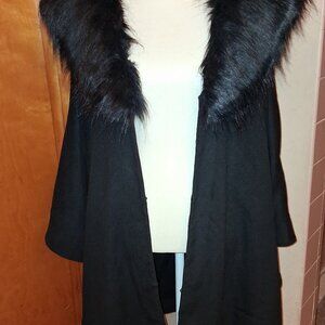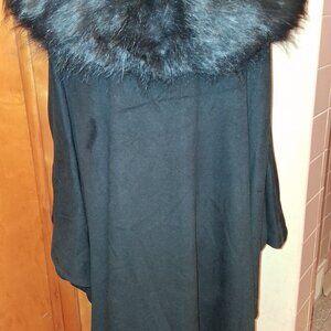 Adrienne Landau Faux Fur Collar Black Poncho/Cape - Size 2x-3x - NWT