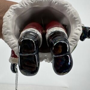 The product is a vintage Department 56 6" Santa Ceramic Bell Ornament with moving arms and legs. This collectible ornament features a Santa character design, made of ceramic material. It is part of the Department 56 brand collection of ornaments, specifically designed for holiday and seasonal decor. The unique feature of this ornament is that it includes moving arms and legs, adding a playful and nostalgic touch to Christmas decorations.