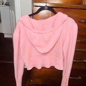 👑 CUTE Y2K Size XS Cropped Pink Hooded Women's Sweater