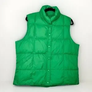 Lands End Y2K Women XL Size 18-20 Kelly Green Goosedown Quilted Puffer Vest Snap
