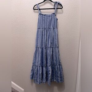 Channel timeless Southern charm in this stunning Draper James maxi dress, featuring soft chambray fabric, delicate white embroidery, and feminine bow-tied straps. The smocked bodice ensures a comfortable, flattering fit while the tiered maxi skirt creates breezy movement—perfect for sun-soaked days, garden parties, or embracing the Coastal Cowgirl aesthetic.