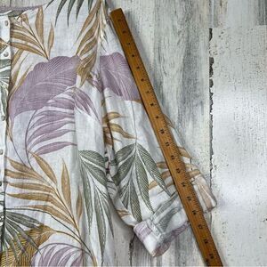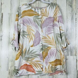 Tahari Linen Shirt Womens 1X Floral Leaves Print Long Roll Sleeve w Button Front