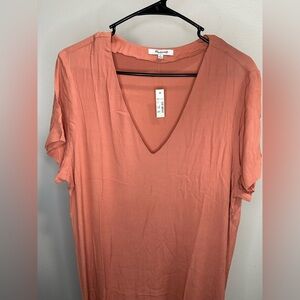 Brand new with tags, never worn. Coral Orangish color. This chic and versatile sheath/shift dress by Madewell is perfect for effortless summer styling. Features a flattering V-neckline and adjustable side buttons for added comfort and style. The polished shift silhouette makes it a go-to piece for an instantly put-together look.